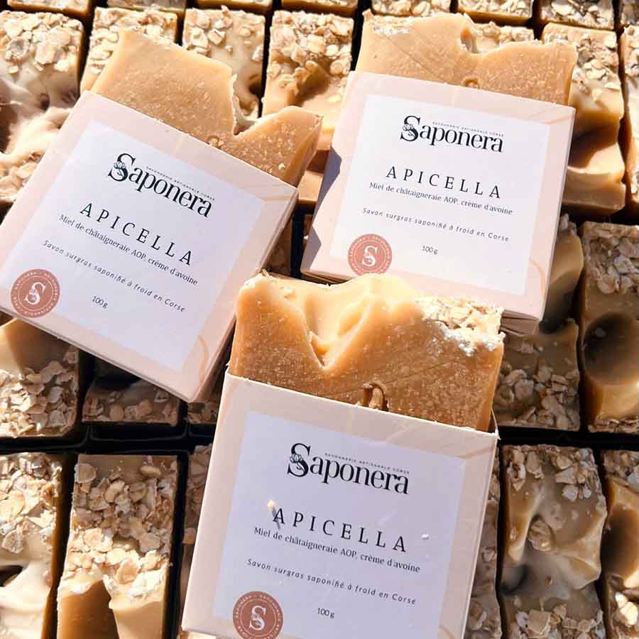 Apicella est fabriqué par la méthode de la saponification à froid à partir d’ingrédients de haute qualité. APICELLA désigne une abeille solitaire qui vit dans la terre.